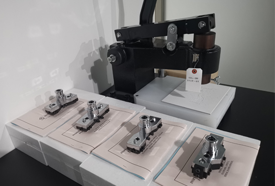 Dimension of Brittleness temperature test specimen stipulated by ISO 974/JIS standard is extremely microscopic size and strict allowable accuracy is defined. Also, numbers of test specimen to be put on the clamp are many [1 shot = 15 pcs. x numbers of brittleness destroy temperature point].